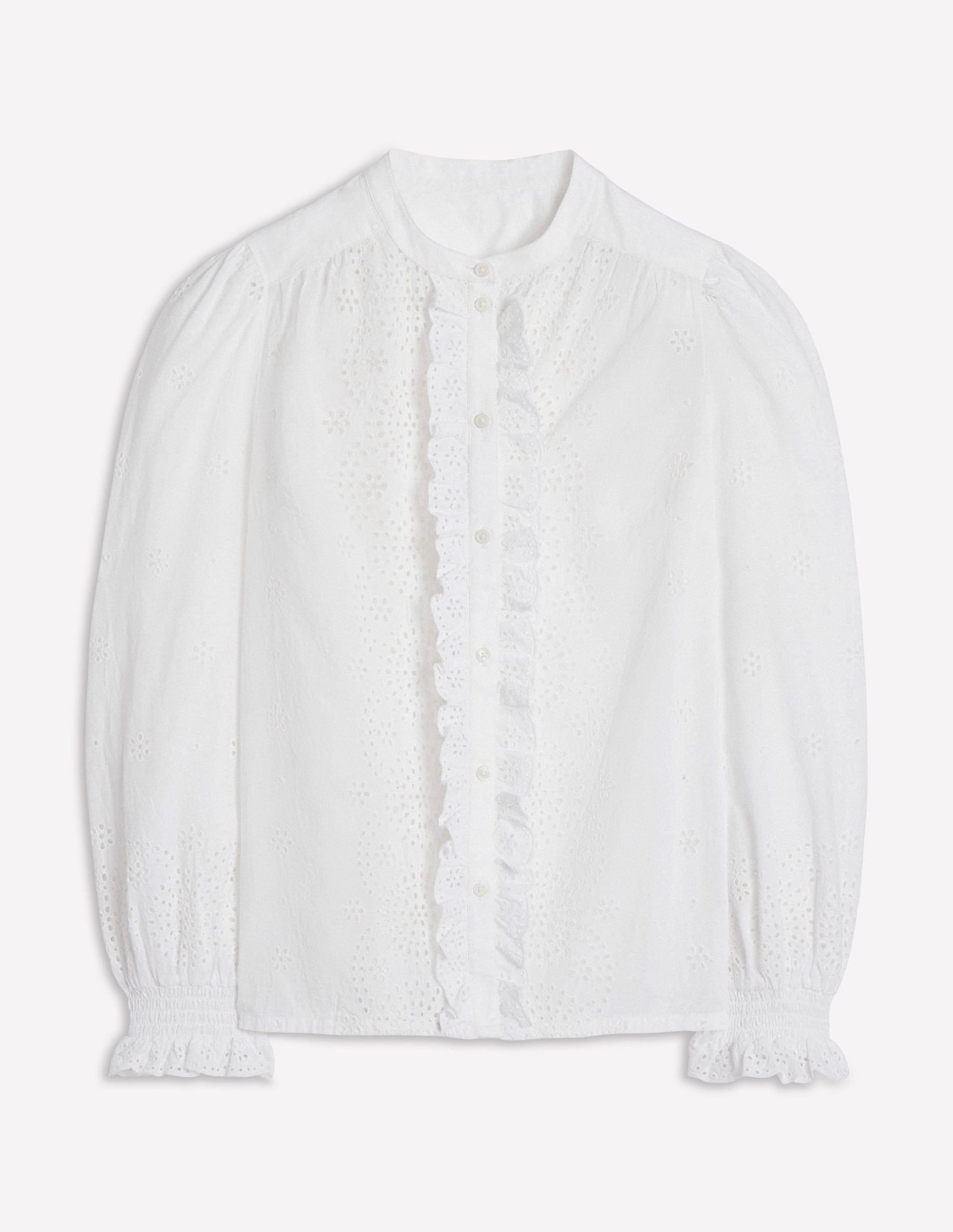 Lean into a summer boho vibe with our Alice broderie top – all billowy sleeves. broderie and romantic ruffles. The precise cut and quality cotton add an office appropriate elegance.