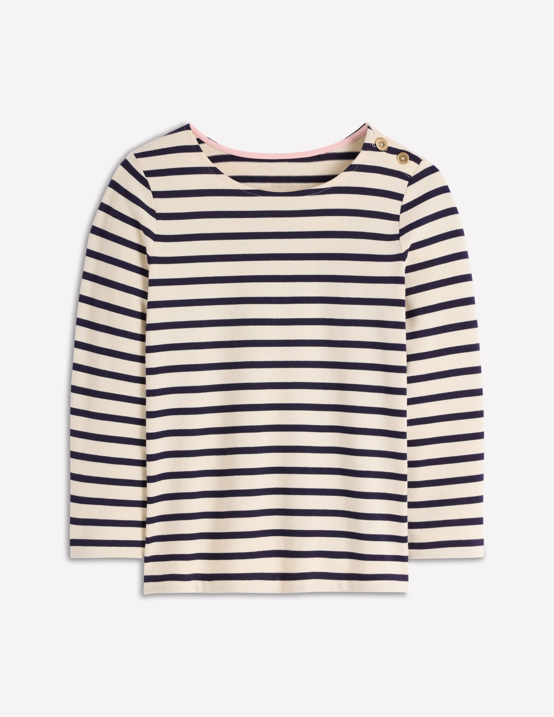 A classic is a classic for a reason and when it comes to the Breton you're in good hands with us. Fresh for a new season we kept the nautical stripes and added shoulder buttons.