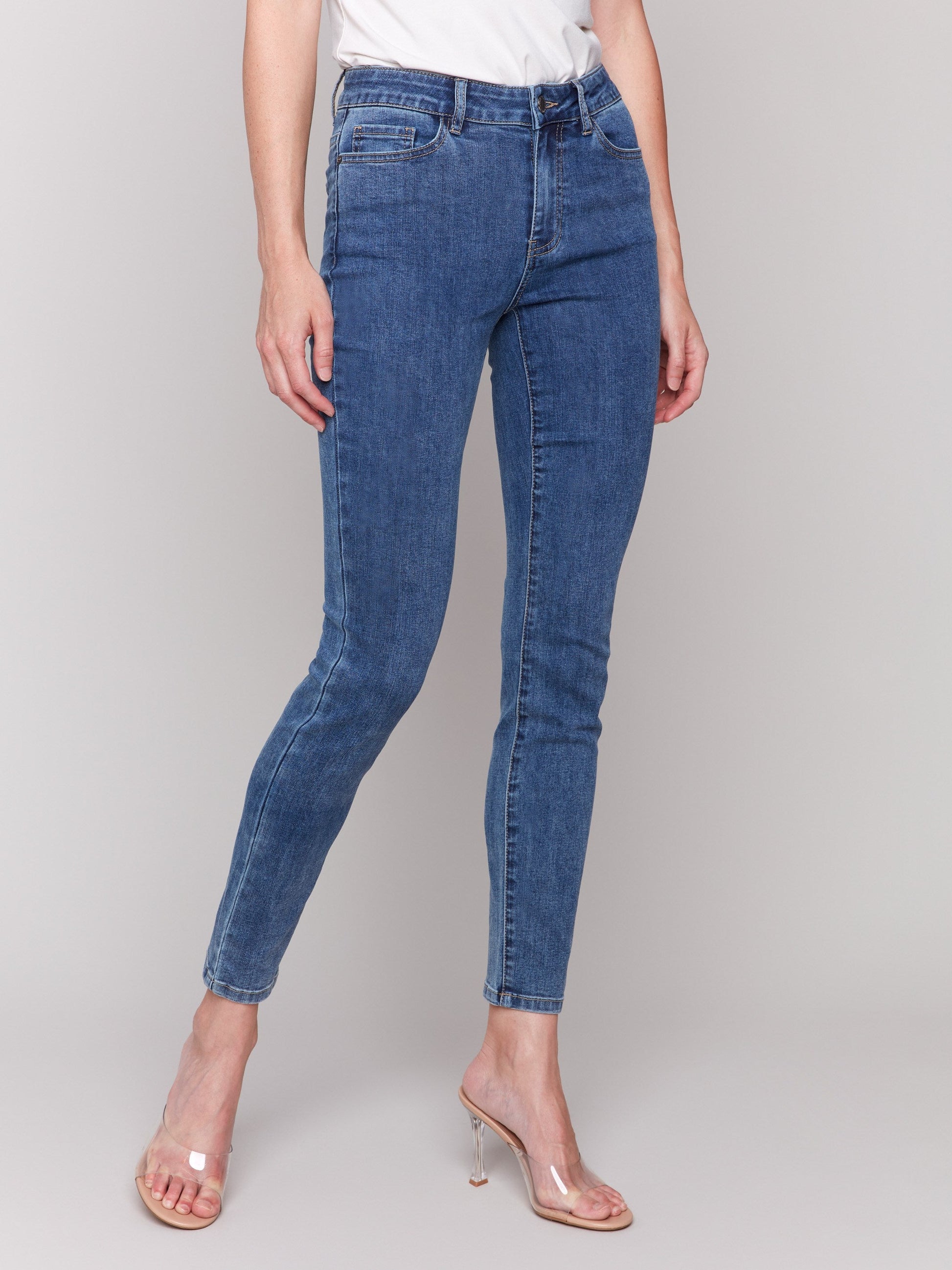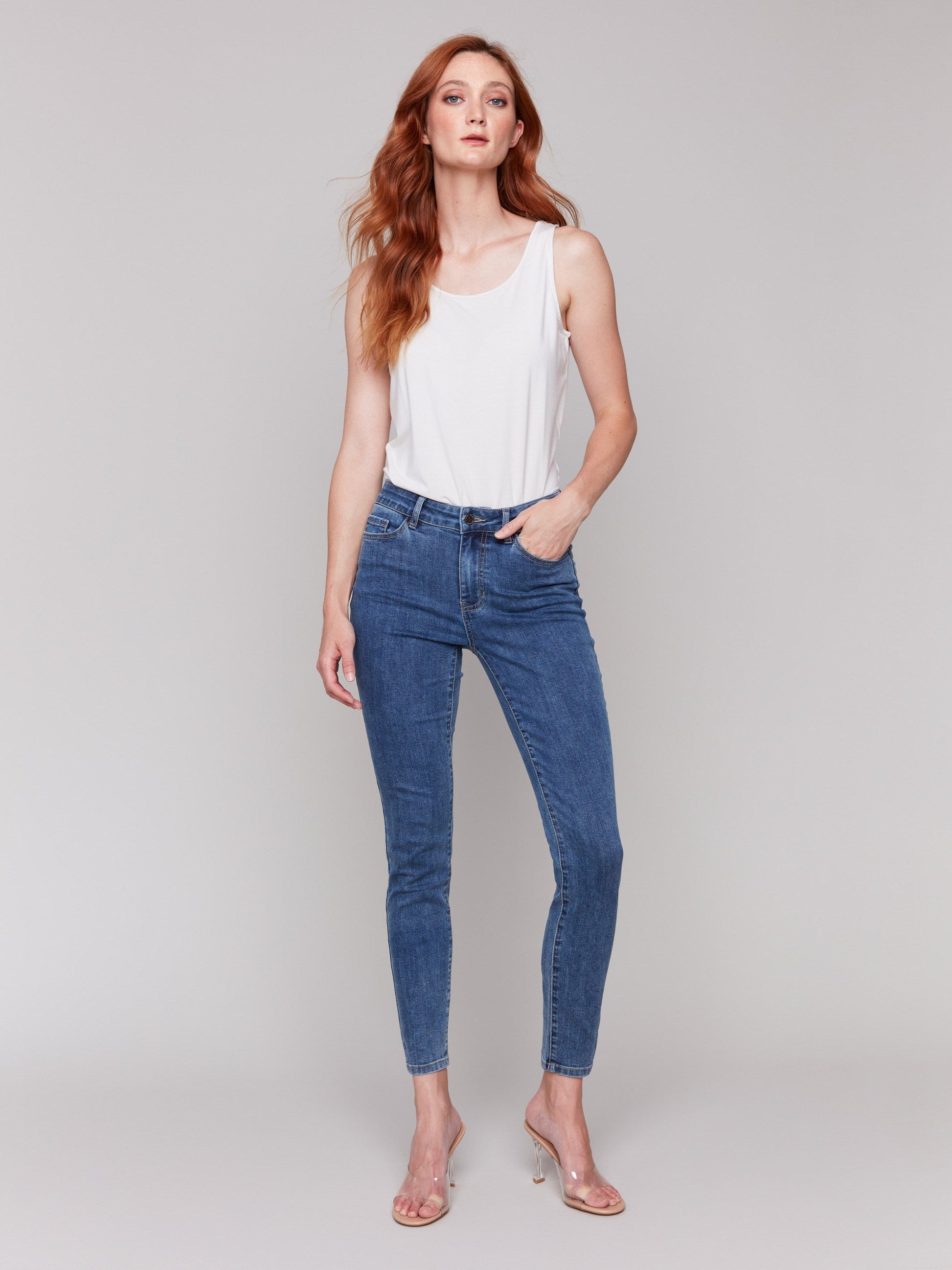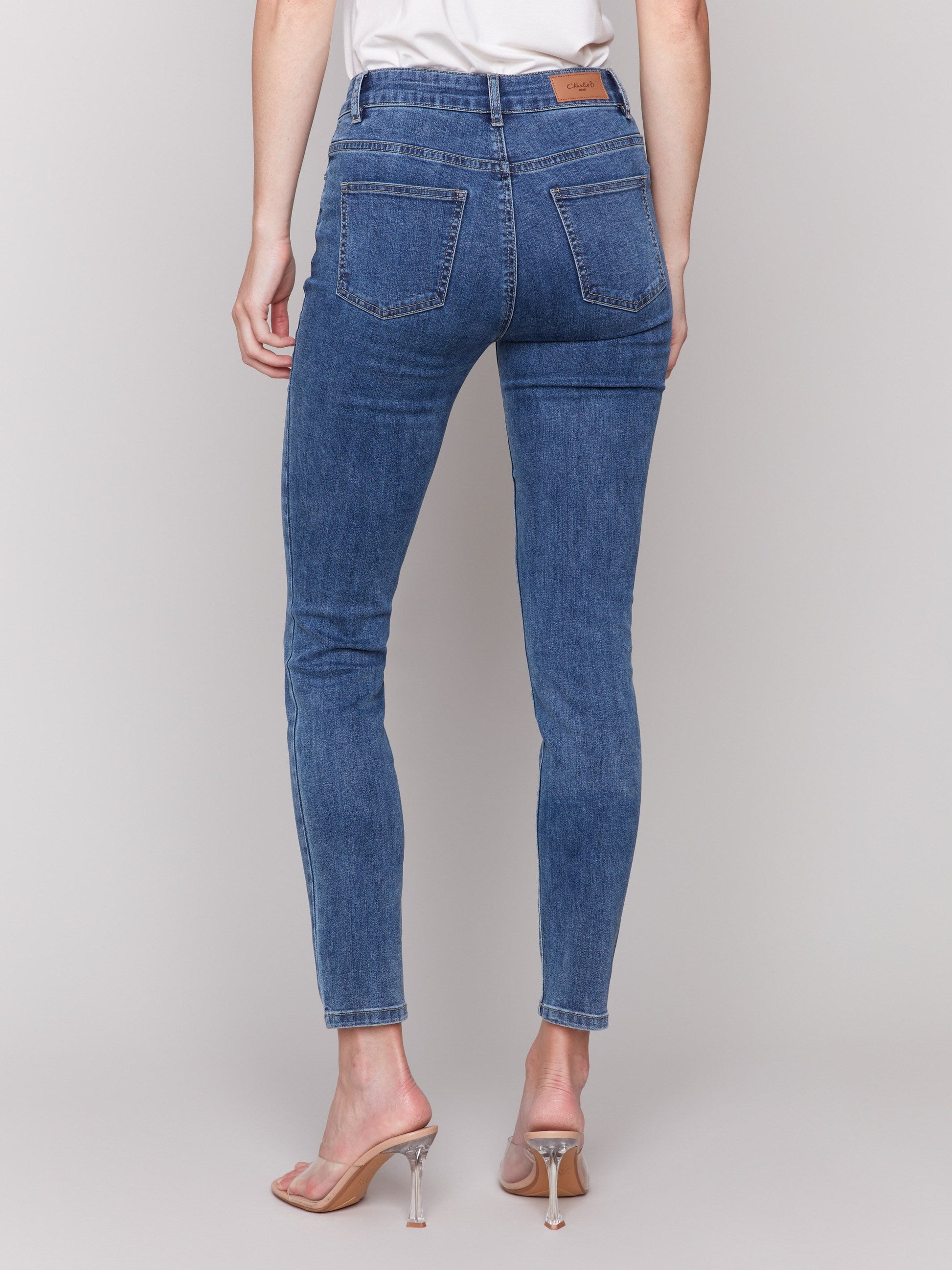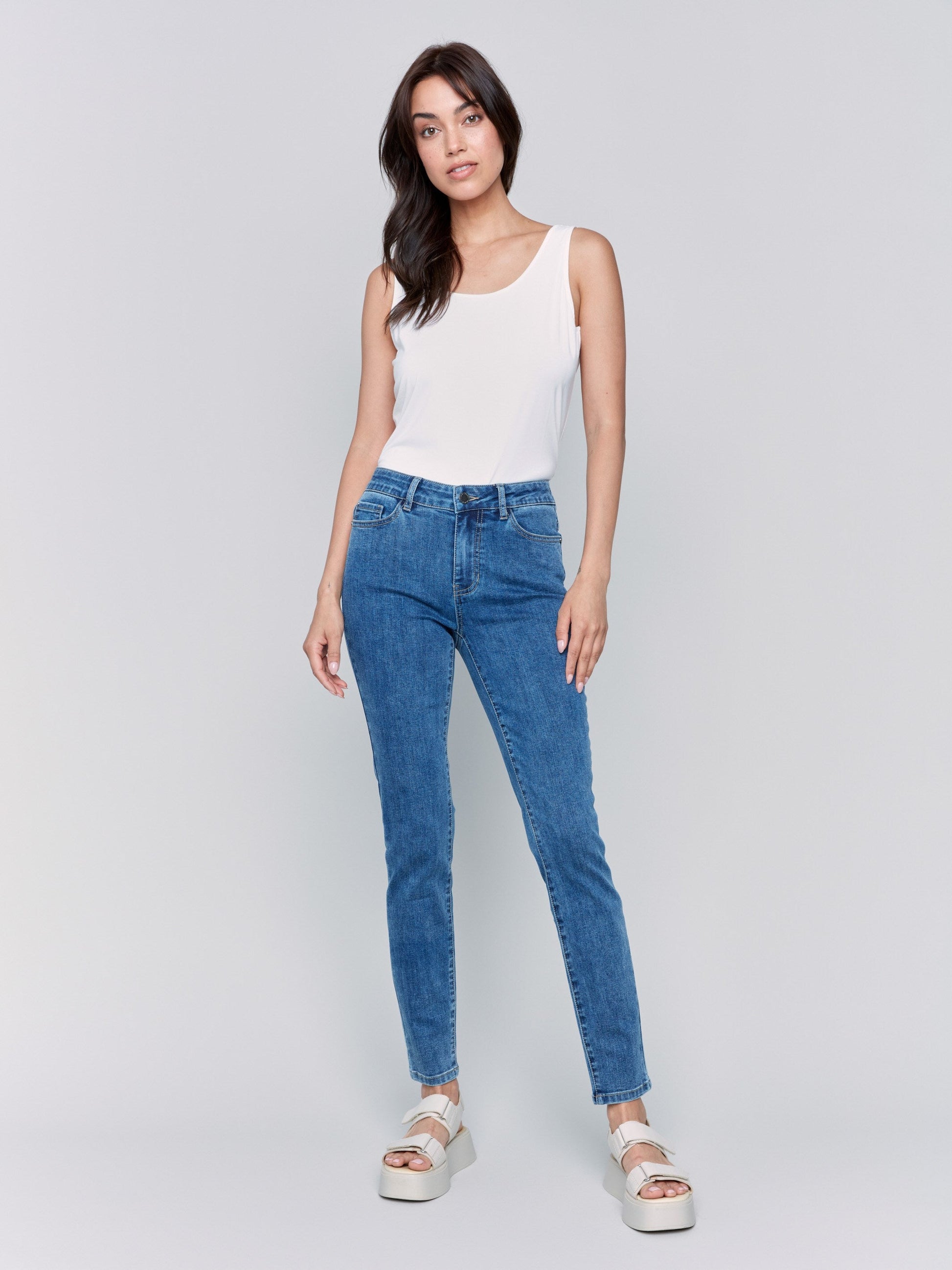 Slip into these stylish Carine Skinny Jeans in Medium Blue and elevate your everyday style. Featuring a flattering fit. they offer versatility to effortlessly transition from day to night. Perfect for pairing with a chic blouse or a casual tee. these jeans are the ultimate spring and summer wardrobe staple you've been searching for.