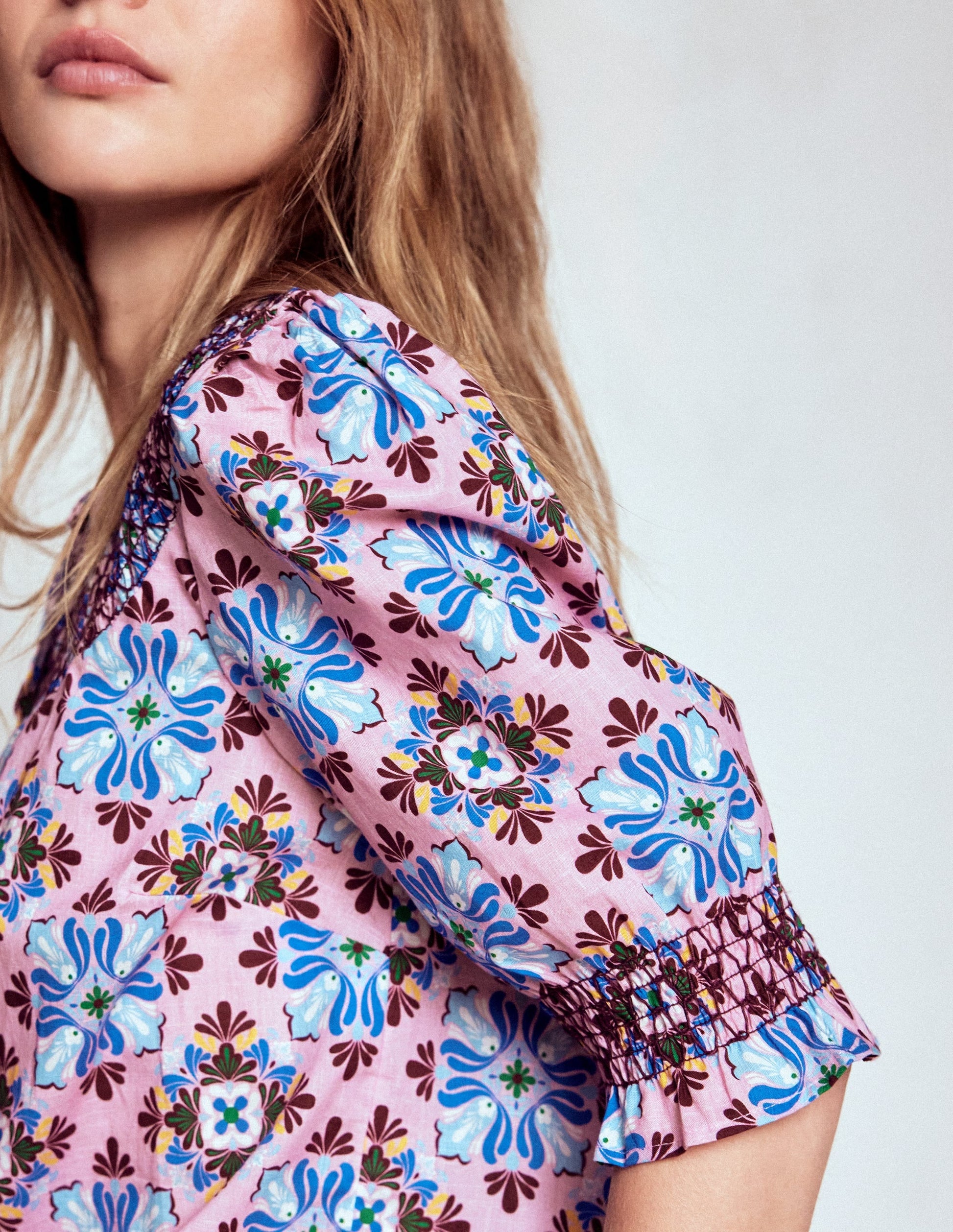 Effie Short Sleeve Top-Formica Pink, Bloom Mosaic