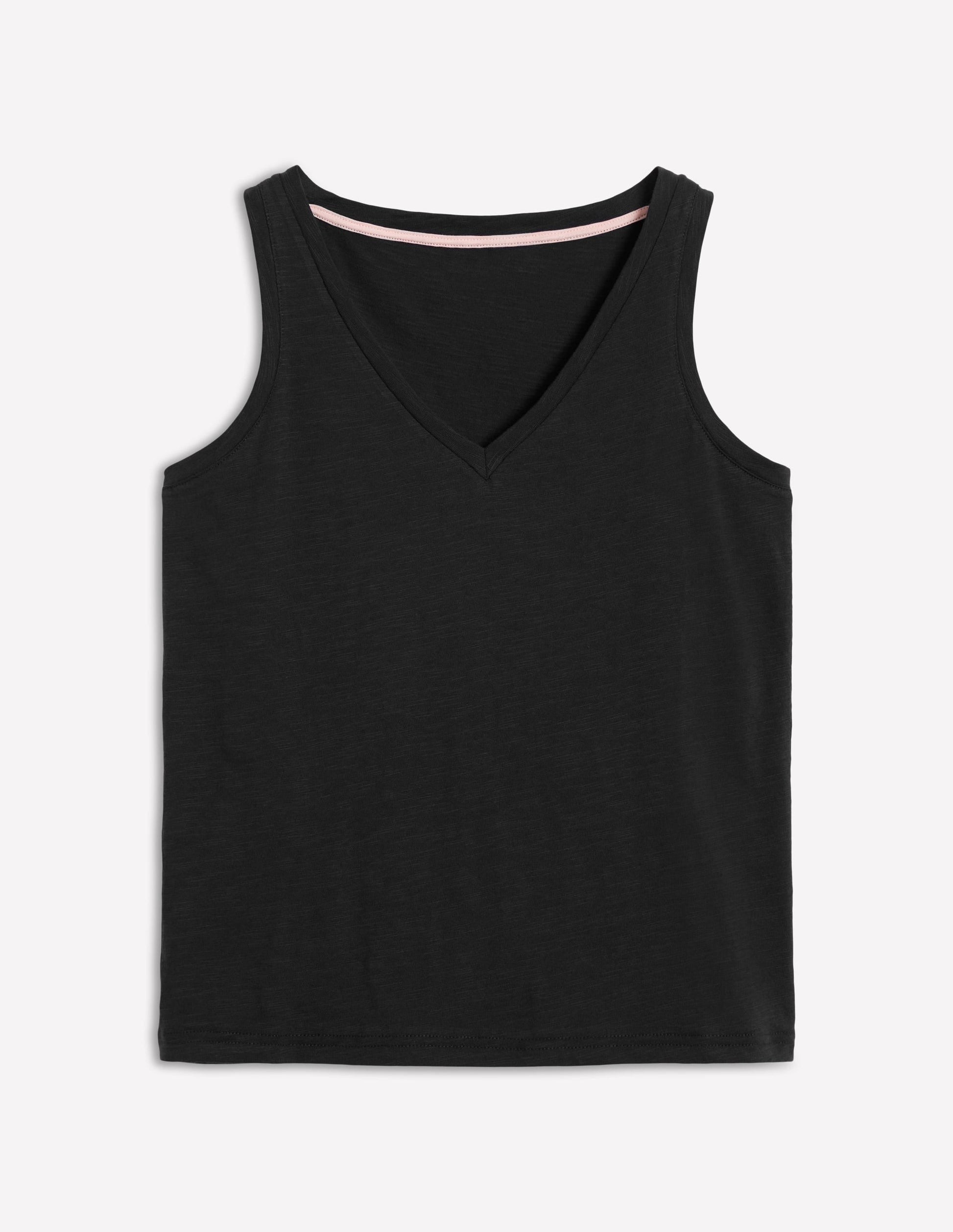 Regular V-Neck Slub Vest-Black