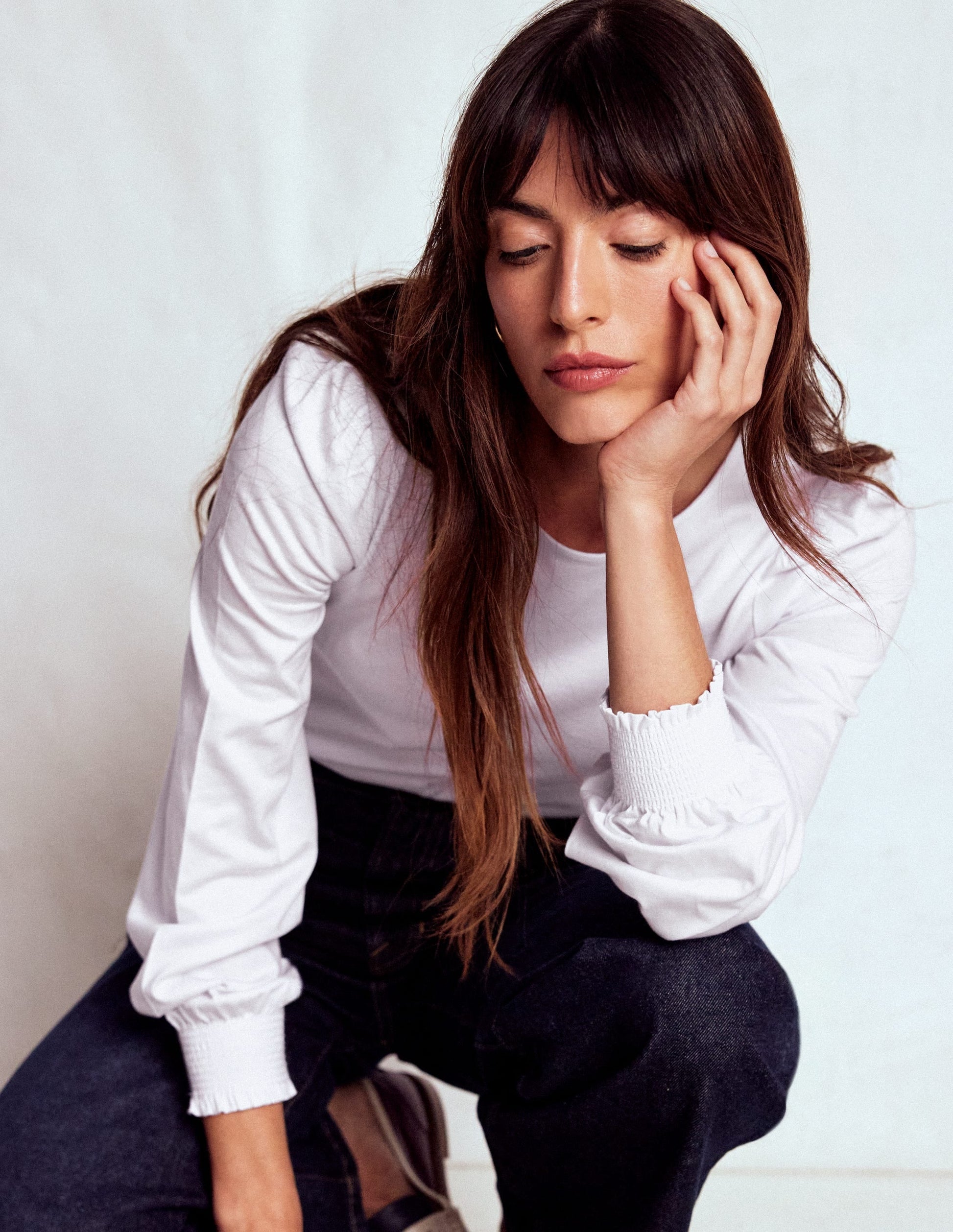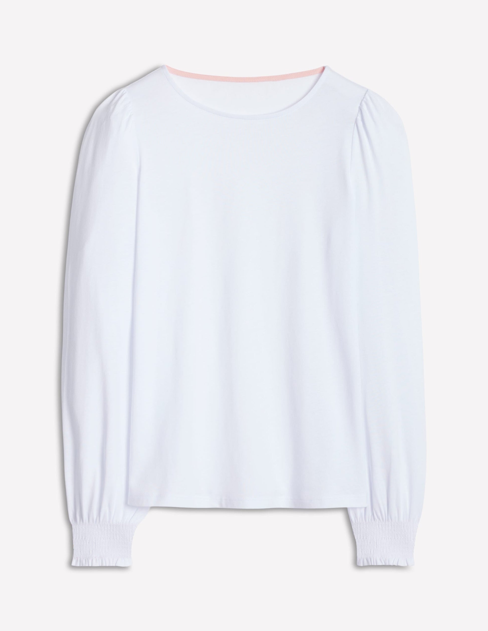 The smocked contrasting colour cuffs and supersoft cotton blend fabric give this basic a point of difference. Layer it under a knitted tank or wear alone tucked into high-rise jeans.